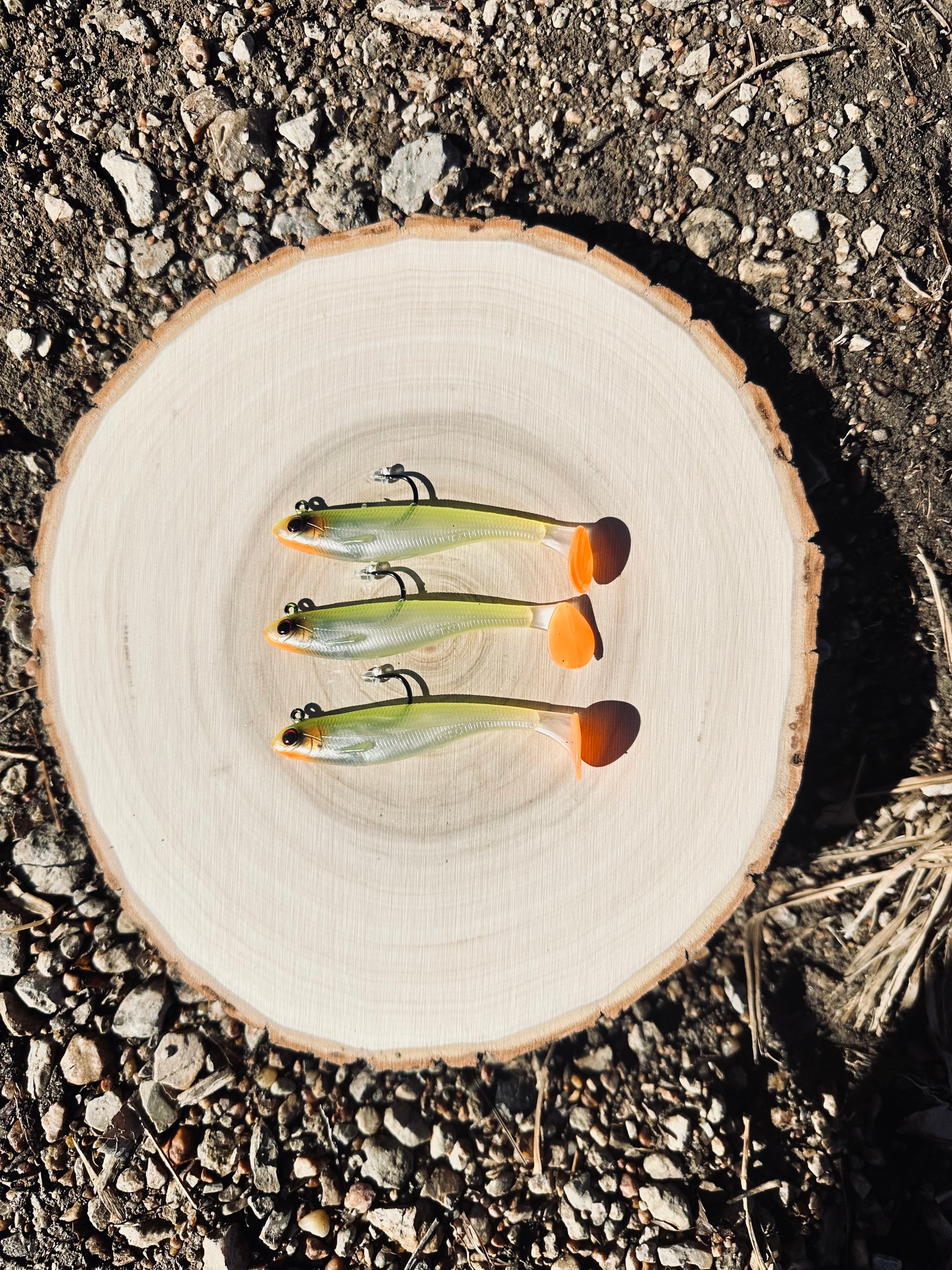 The perfect bait in our opinion, the possibilities with our paddle tail soft plastic swim baits  are endless whether you are fishing for Crappie, smallmouth, largemouth, etc you name it it'll catch it. with a slim three and a half inch long profile its the perfect size to catch a large variety of species. We recommend dragging it across the beds in spring or a medium paced retrieval all summer. It comes in a high stretch soft plastic with the high quality sharp hook already imbedded!
